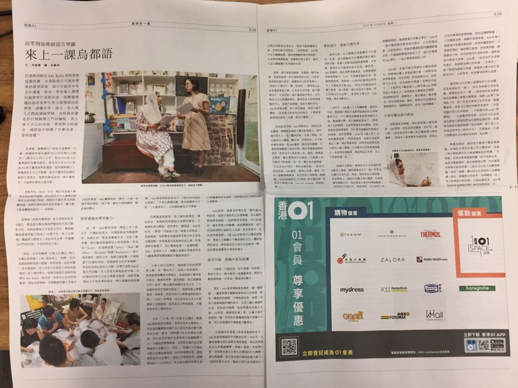謝謝《香港01》報導烏都語班,很詳盡分享了Asfa老師的故事,她由巴基斯坦來港後,為了克服生活的不同困難,如何努力掙扎著學中英文,後來更能在居住的土瓜灣社區開設烏都語班,將自己的文化分享。